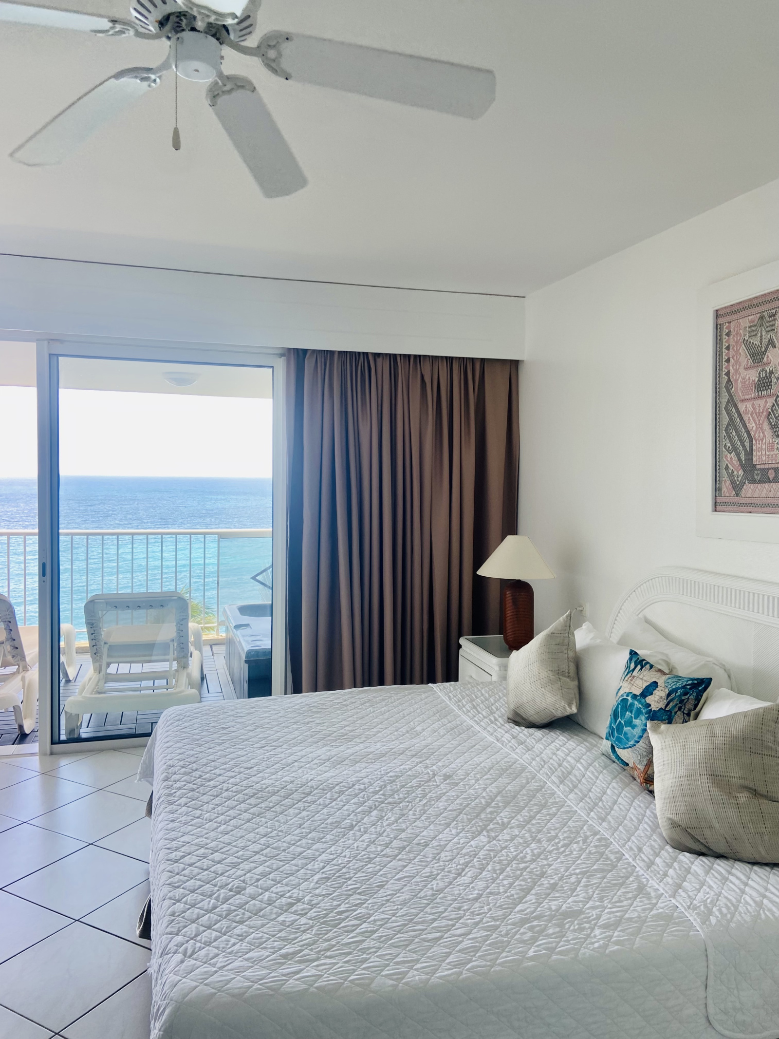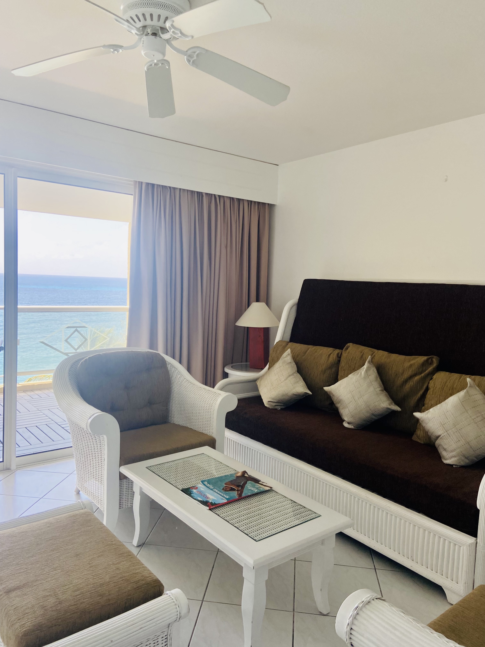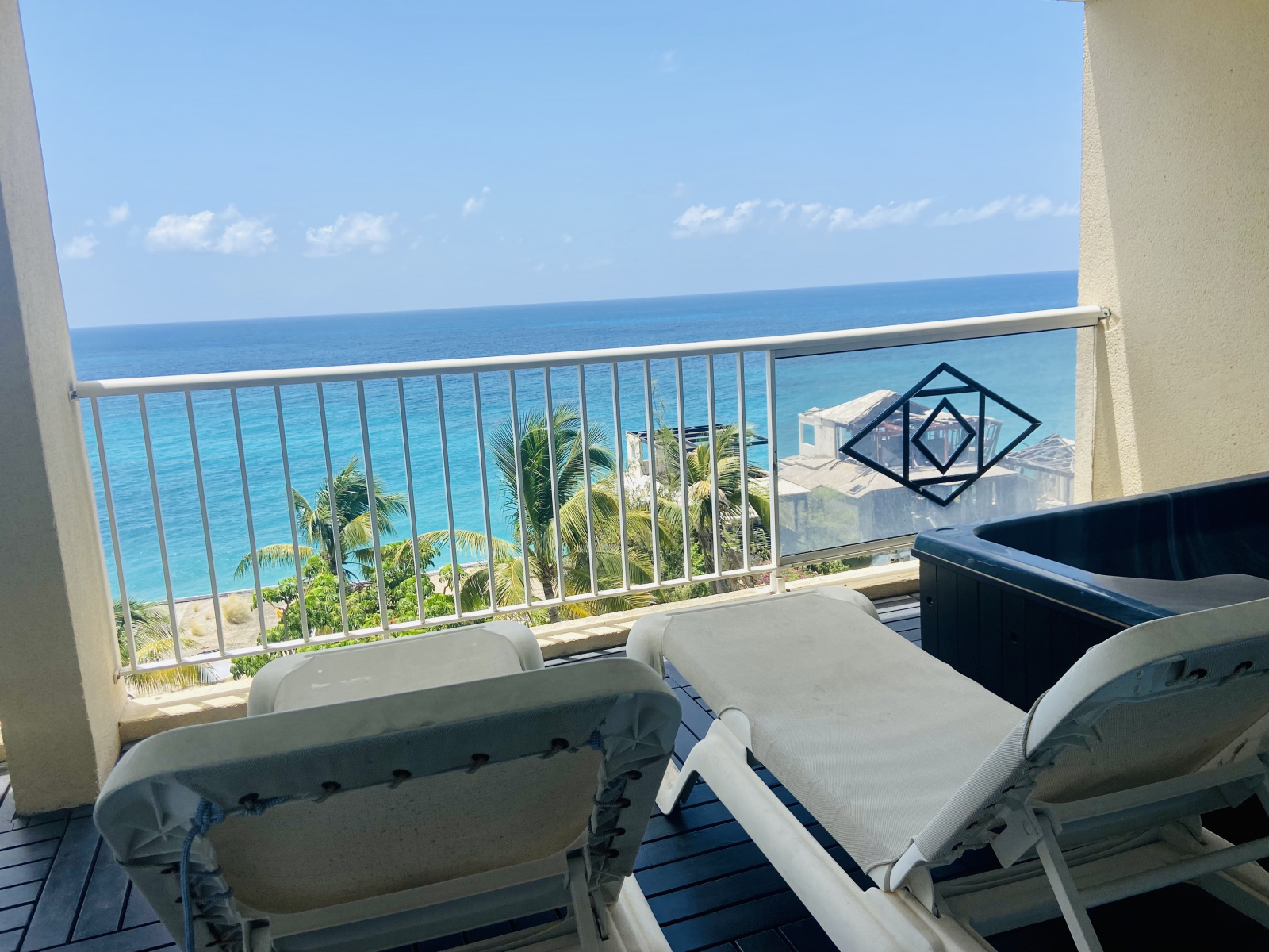 Ne manquez pas l'occasion de séjourner dans notre spacieuse suite de deux chambres, offrant un confort exceptionnel pour votre escapade. Cette suite est équipée d'un lit king-size, de deux lits simples et d'un canapé-lit complet, ainsi que de deux salles de bains élégamment décorées avec du marbre et du carrelage italien. Vous pourrez vous détendre dans le salon ou profiter de moments de convivialité sur la terrasse privée qui offre une vue imprenable sur la mer des Caraïbes.